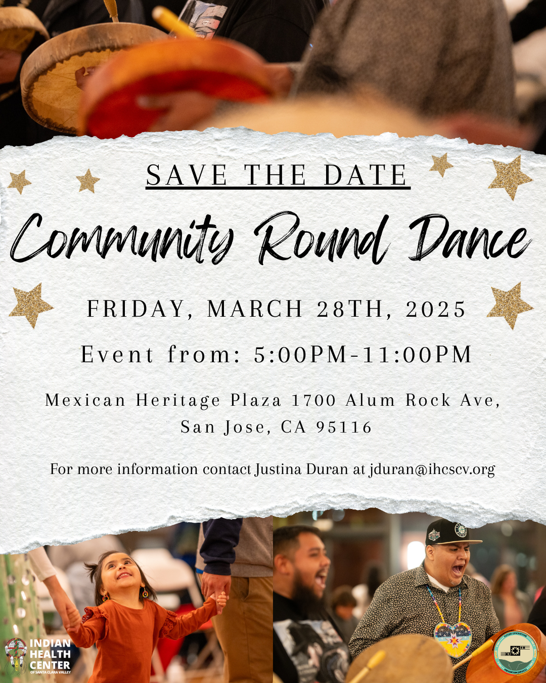 Join us for our upcoming Community Round Dance! On Friday, March 28th 2025 IHC Counseling Prevention Services will be hosting a healing community round dance at the Mexican Heritage Plaza at 1700 Alum Rock Ave. San Jose, CA 95116. Invited singers TBA, keep checking our social media to stay updated!