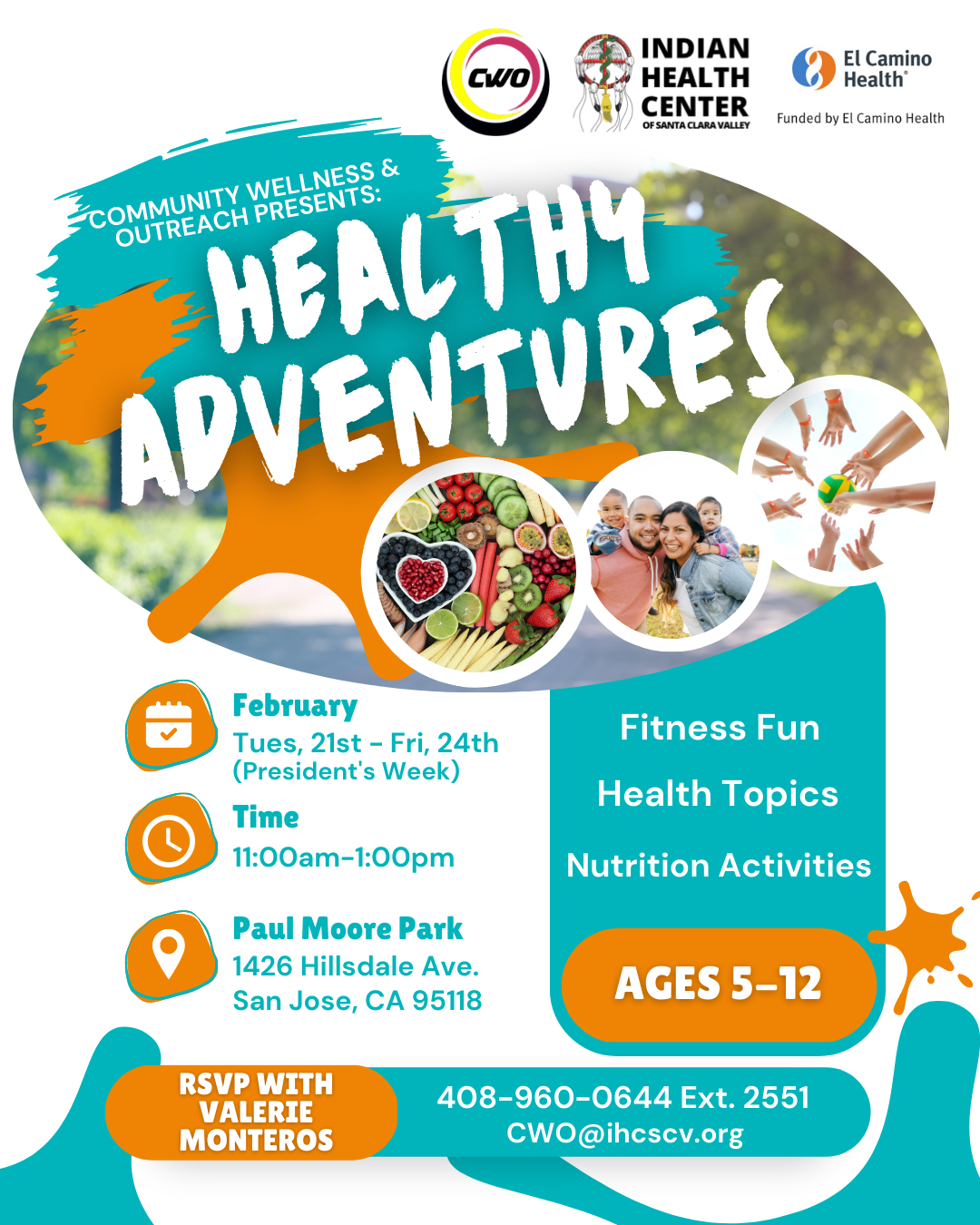 The February program will be a 4-day program at Paul Moore Park. Kids and their families will engage in fitness activities led by our fitness coordinator Marissa Hemstreet. Ruben Vargas (Registered Dietician, RDN) and Vanessa Ruvalcaba (IHC Health Educator) will teach various nutrition and health topics.