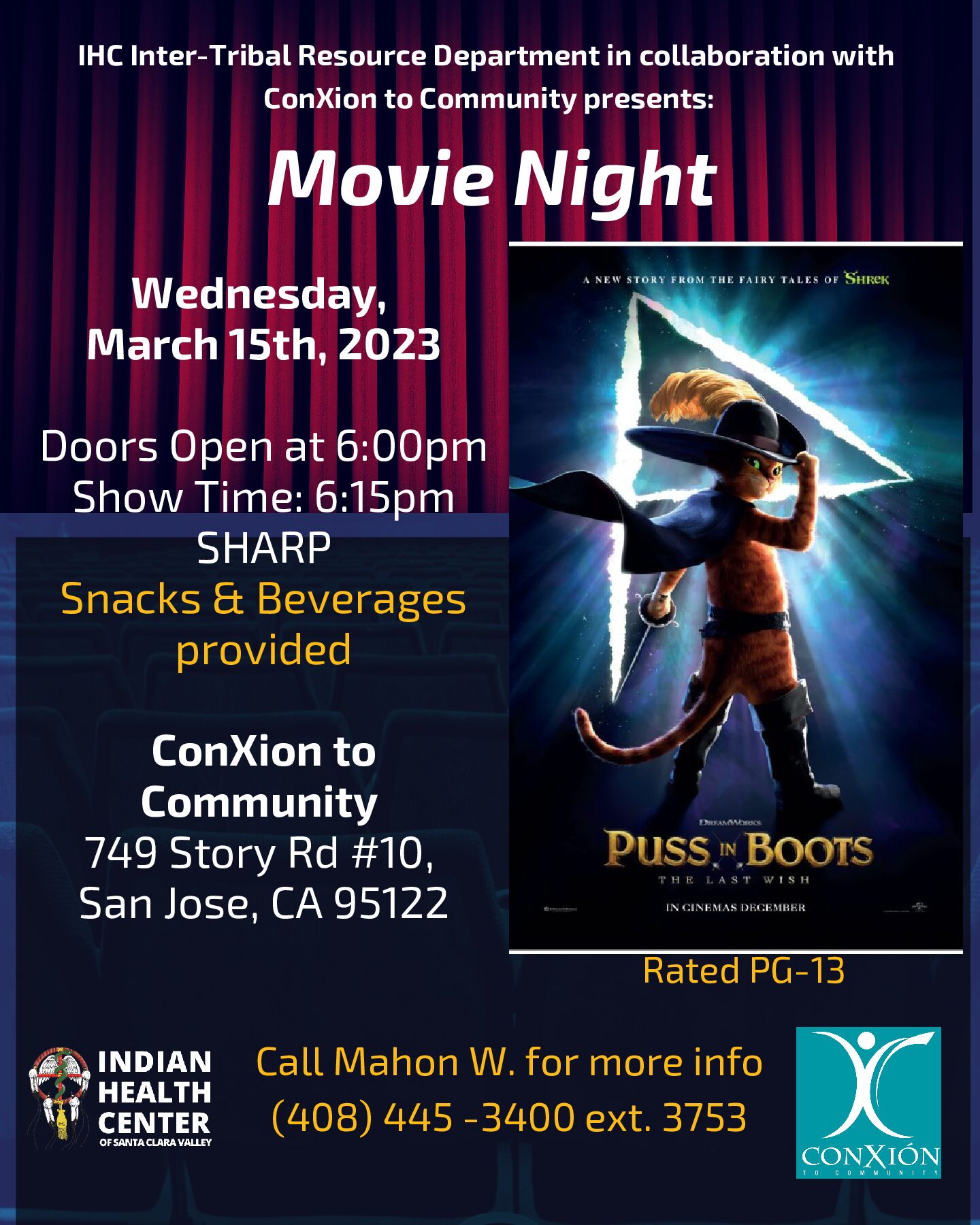 Movie Night will take place on Wednesday, March 15, 2023 at 6 PM