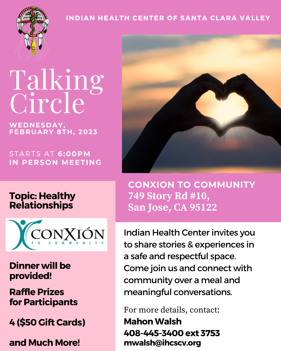 Indian Health Center invites you to share stories and experiences in a safe and respectful space. Come join us and connect with community over a meal and meaningful conversations.