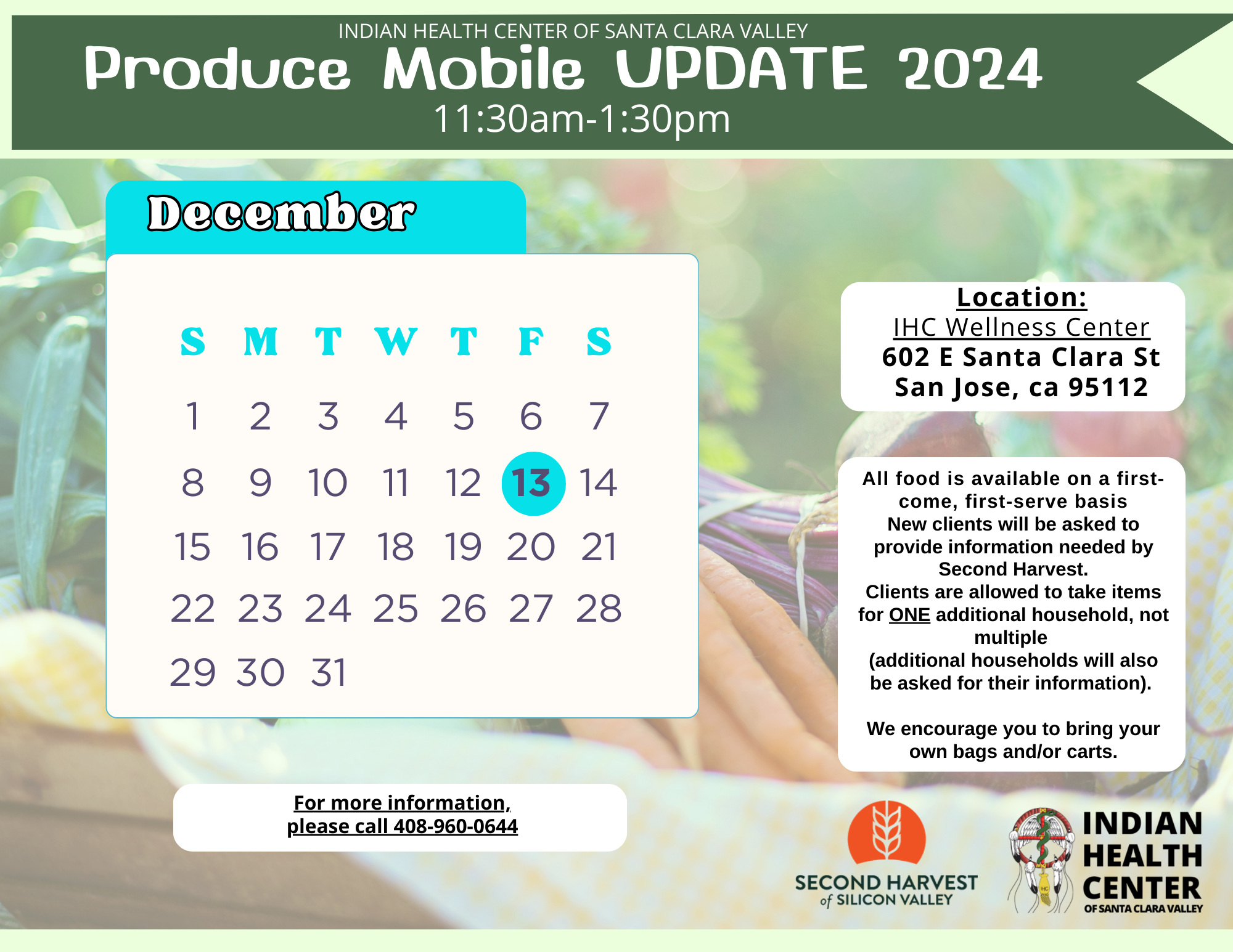 Free grocery program, bring your own bags, and/or carts for an easier pick up. Reminder: there will be no parking available for anyone other than our IHC staff.