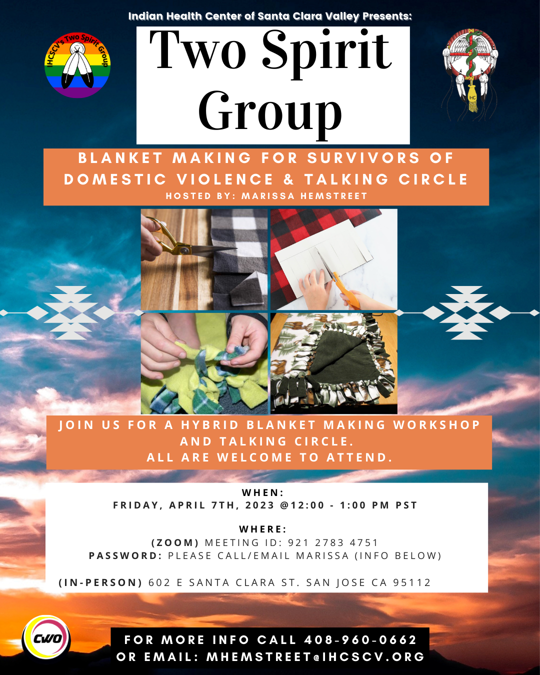 This month, we will have a Blanket Making Workshop and Talking Circle. All blankets will be donated to survivors of domestic violence through the San Jose non-profit organization, Next Door Solutions to Domestic Violence. Light snacks will be provided.
