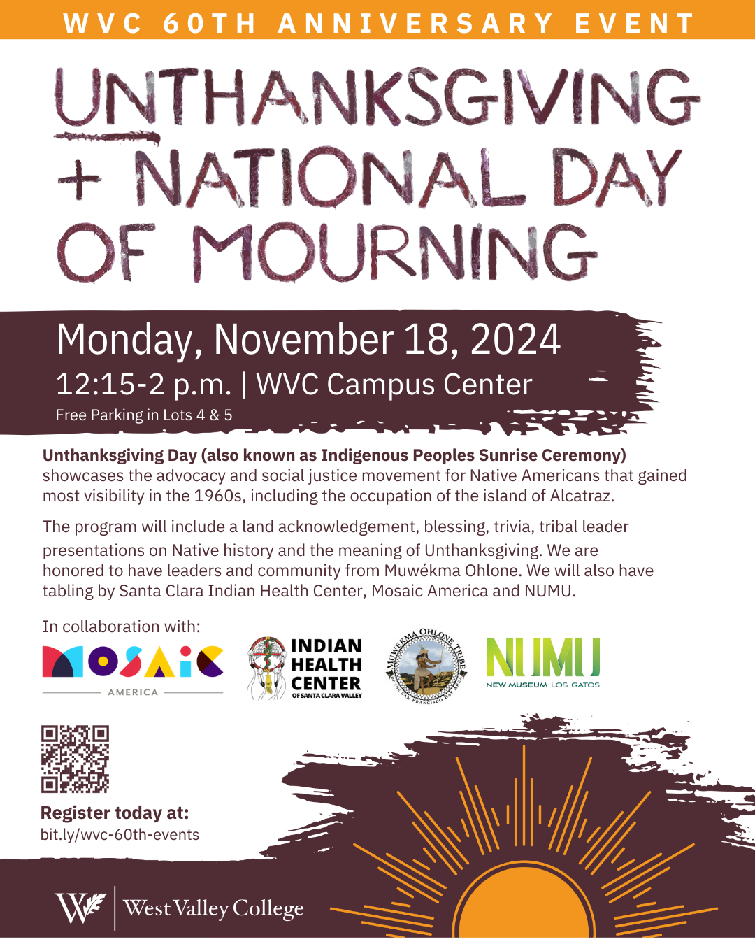 Join us for the Unthanksgiving and National Day of Mourning event at West Valley College on November 18th! πΏ