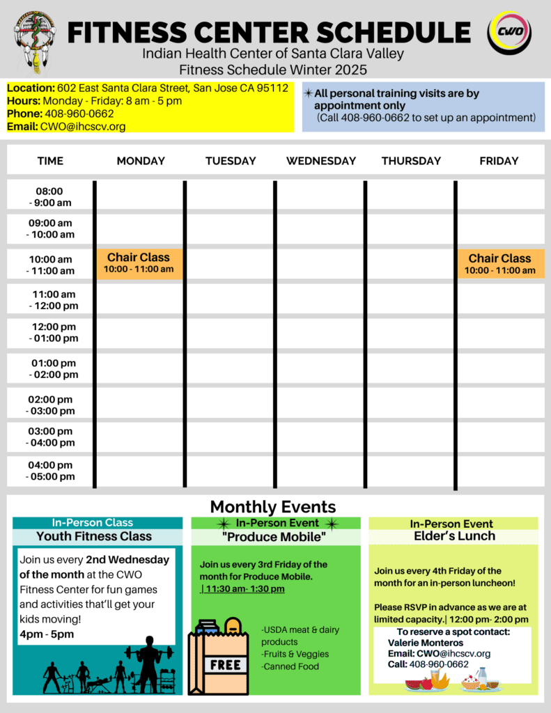 Locations: Downtown Wellness CenterThe Fitness Center is available to Indian Health Center’s patients, members of Santa Clara Family Health Plan insurance and the broader San Jose Community FREE of charge. Not only will you be able to use the gym, but you’ll have access to a certified Personal Trainer, and group exercise classes such as Chair Exercise, and Youth Fitness.